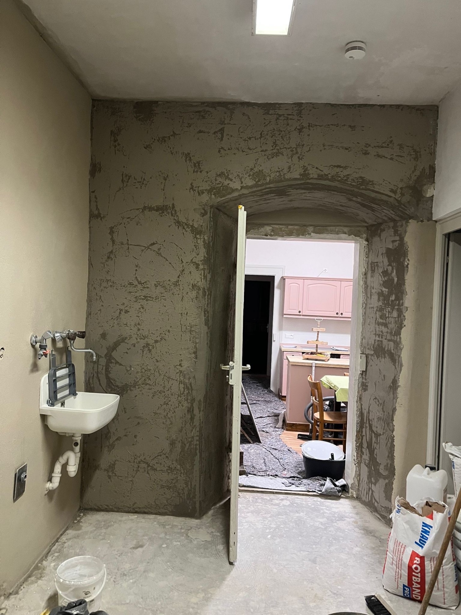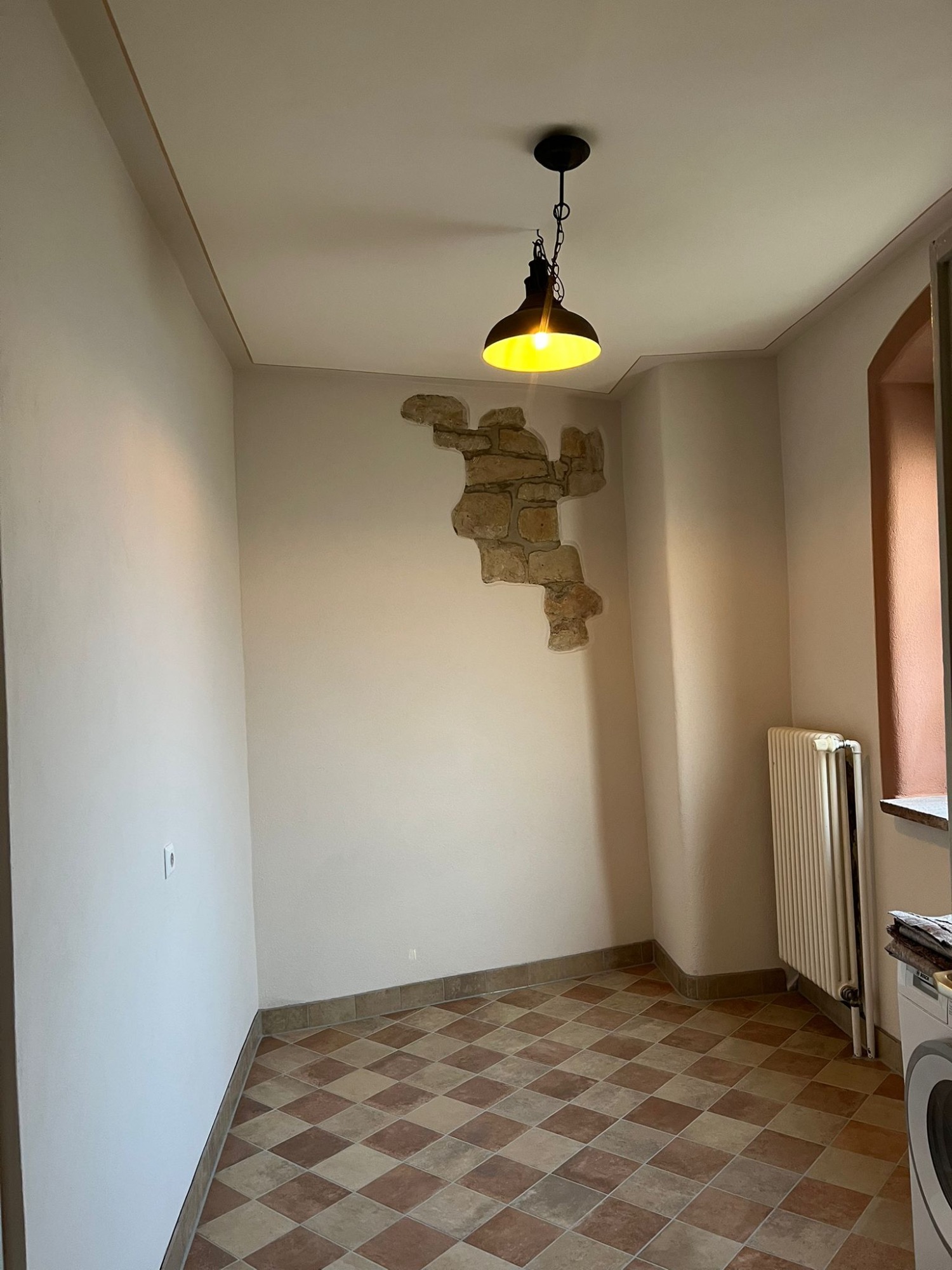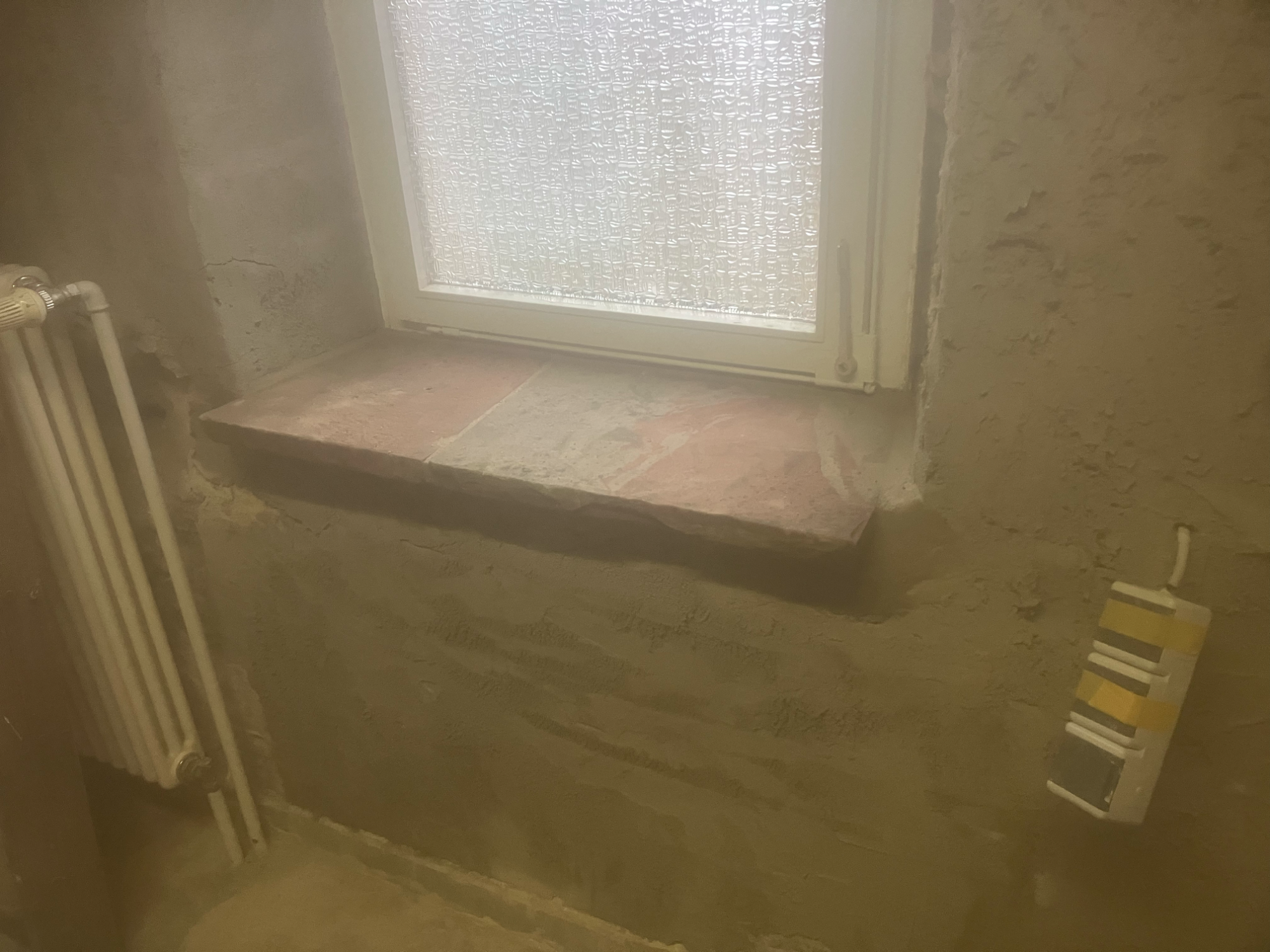Die Wände wurden bis auf die ursprüngliche Sandsteinwand zurückgebaut, der Raum sorgfältig trockengelegt und anschließend neu verputzt sowie gestrichen. Der alte PVC-Boden wurde entfernt und durch neue Bodenfliesen ersetzt. Zusätzlich wurde die gesamte Elektrik erneuert, sodass der Raum nun sicher und funktional genutzt werden kann.