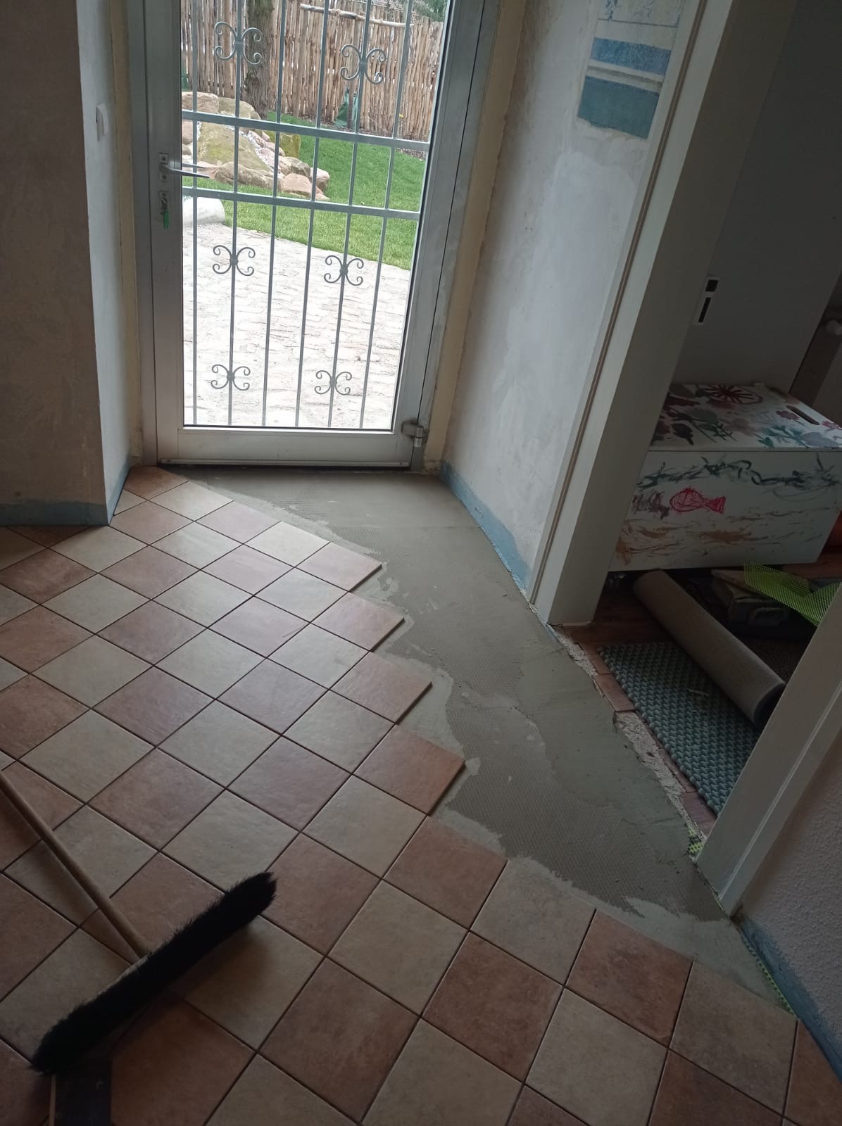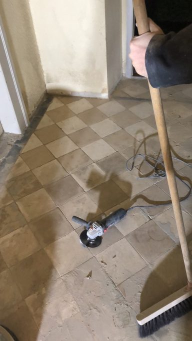 Die vorhandenen Fliesen stellten eine besondere Herausforderung dar, da teilweise Betonflächen zwischen den ursprünglichen Fliesen sichtbar waren. Um ein einheitliches Gesamtbild zu schaffen, wurde der Bereich vollständig überarbeitet und neu überfliest, sodass eine harmonische und durchgängige Fläche entstanden ist.