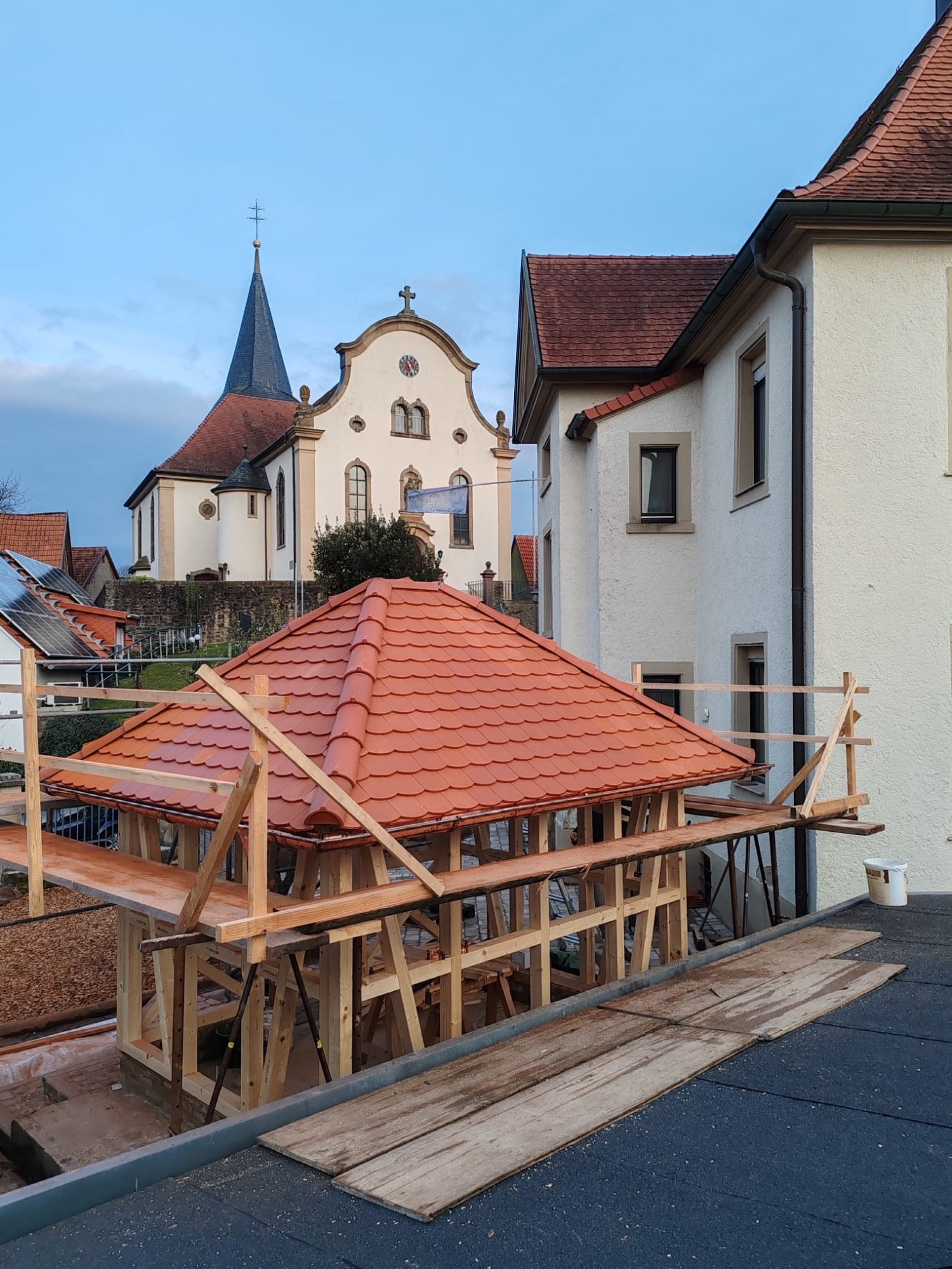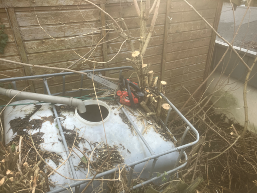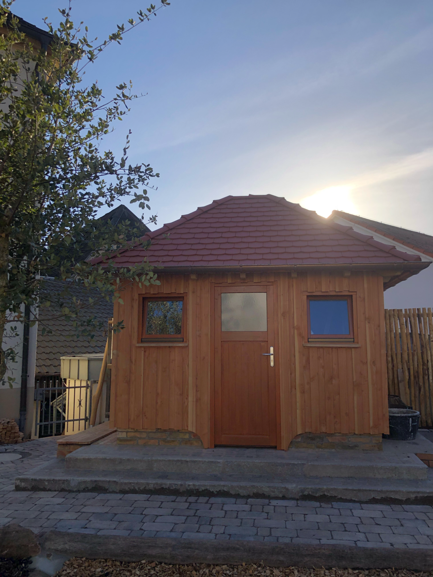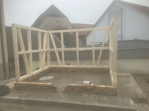 Auch der Vorgarten hat sich deutlich verändert. Eine alte, marode Hütte wurde abgebaut und durch eine neue, stabile Hütte ersetzt. Sie dient nun als Ort zum Werken und als Unterstand für die Fahrzeuge der Kinder.