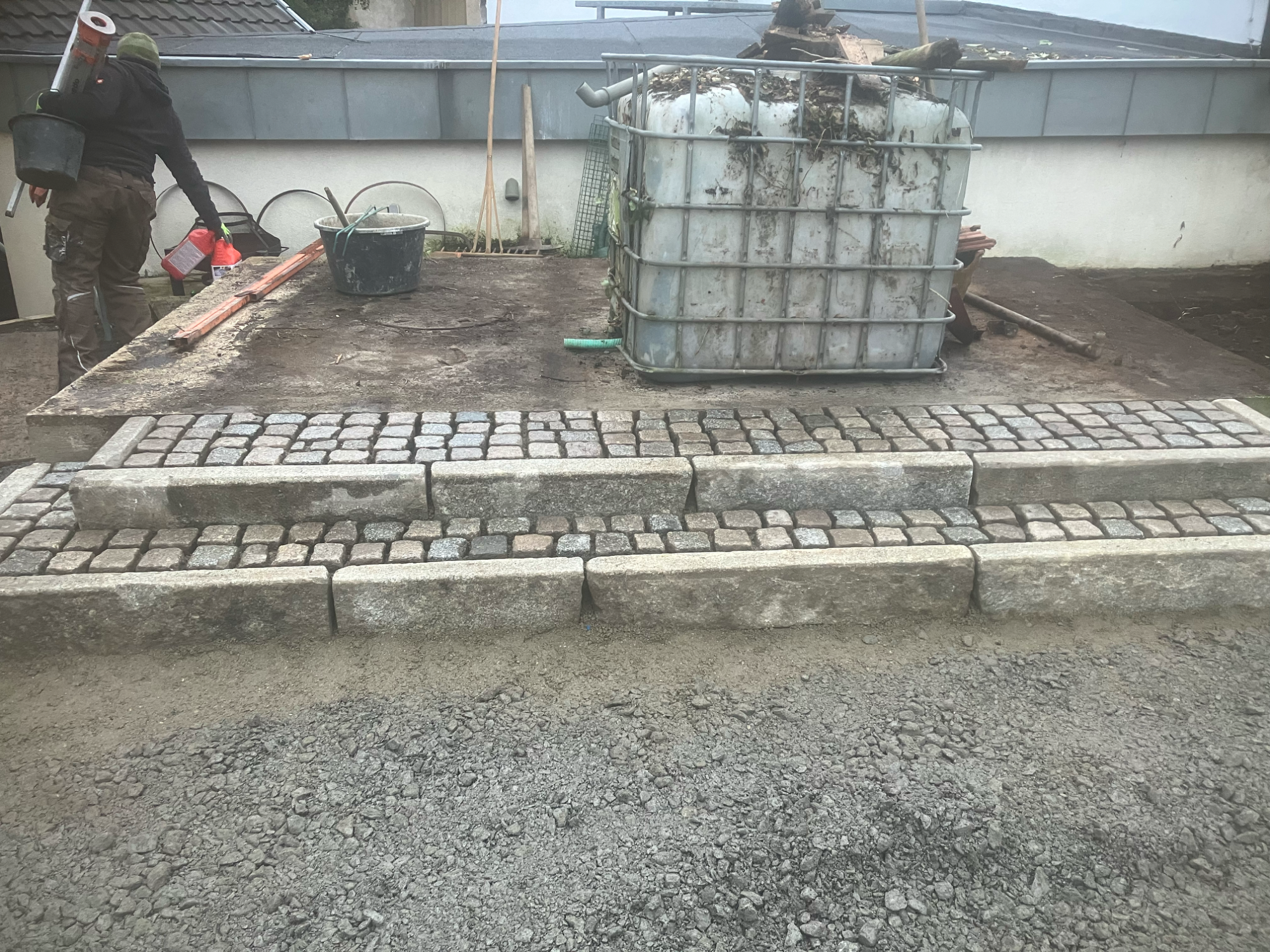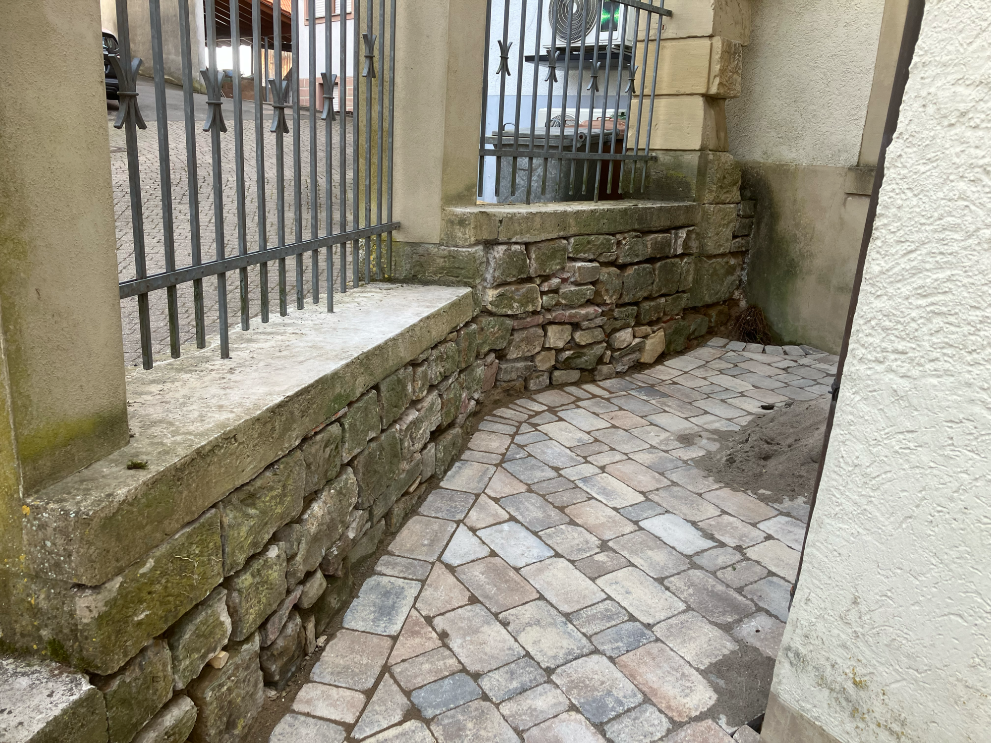 Um den Kindern mehr Bewegungsraum zu bieten, wurde eine ebene Pflasterfläche angelegt, auf der gefahren, gespielt und ausprobiert werden kann. Ein hoher Holzzaun sorgt dabei für Sicherheit und einen geschützten Rahmen.